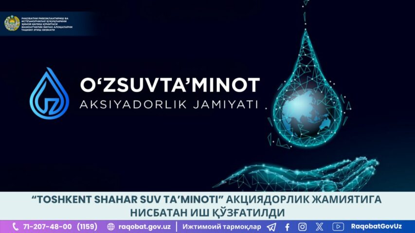 “TOSHKENT SHAHAR SUV TA’MINOTI” АКЦИЯДОРЛИК ЖАМИЯТИГА НИСБАТАН ИШ ҚЎЗҒАТИЛДИ