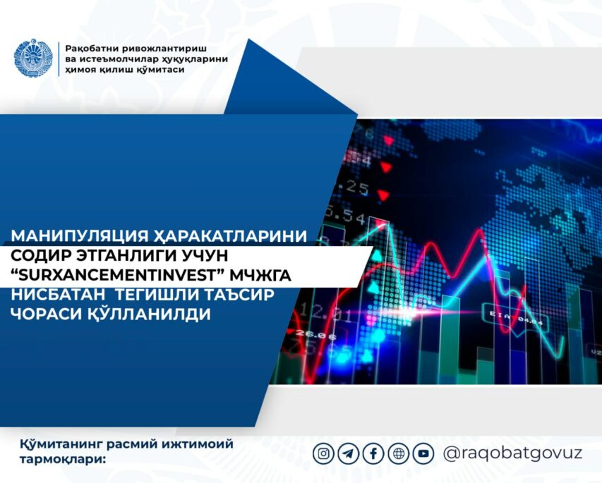 МАНИПУЛЯЦИЯ ҲАРАКАТЛАРИНИ СОДИР ЭТГАНЛИГИ УЧУН “SURXANCEMENTINVEST” МЧЖга НИСБАТАН ТЕГИШЛИ ТАЪСИР ЧОРАСИ ҚЎЛЛАНИЛДИ