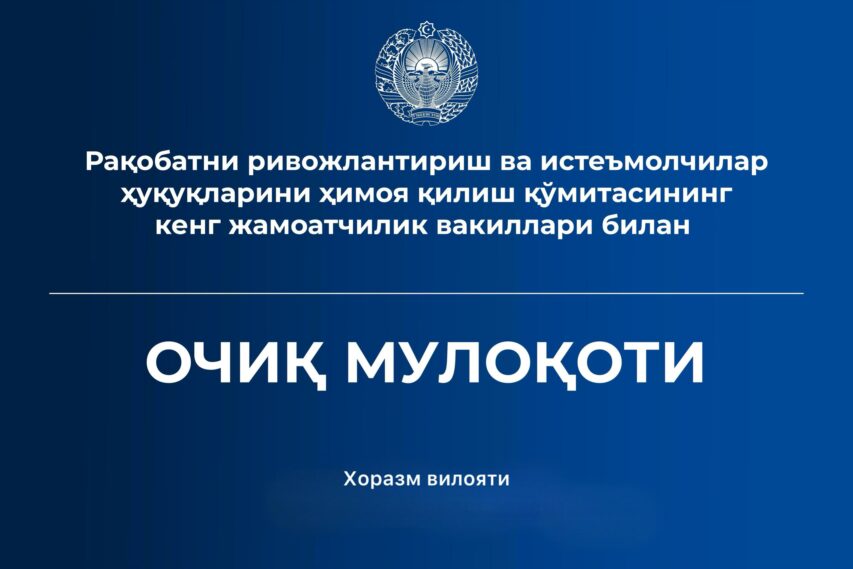 ХОРАЗМ ВИЛОЯТИДА РАҚОБАТ ҚЎМИТАСИНИНГ НАВБАТДАГИ ОЧИҚ МУЛОҚОТИ БЎЛИБ ЎТДИ