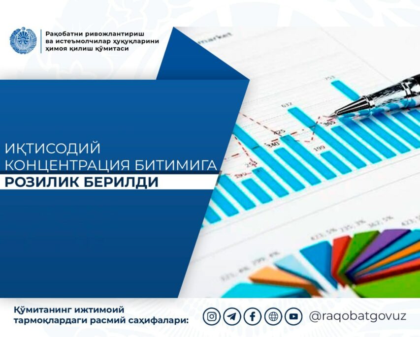 ИҚТИСОДИЙ КОНЦЕНТРАЦИЯ БИТИМИГА РОЗИЛИК БЕРИЛДИ