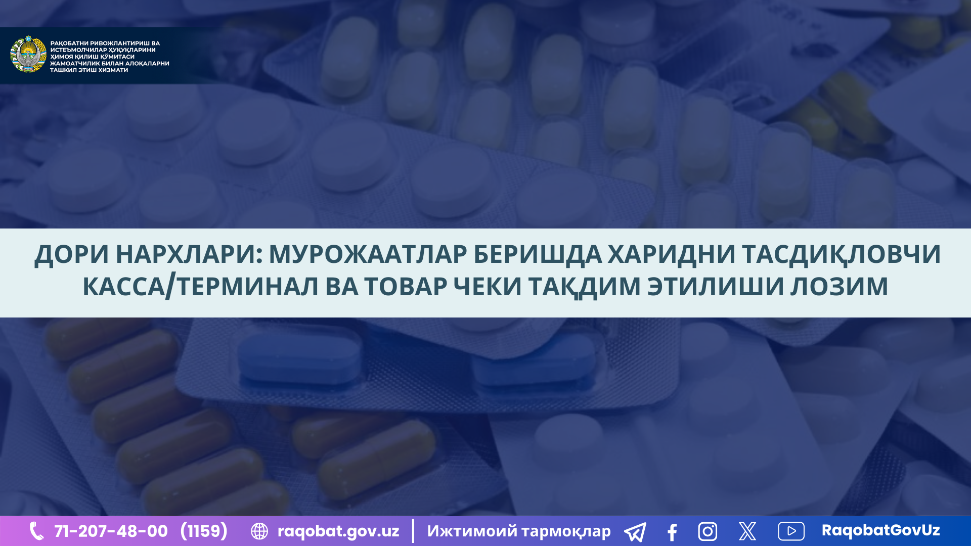 Шу муносабат билан ушбу мурожаатда кўрсатилган ҳолат юзасидан фуқаро томонидан товар сотиб олинганлигини тасдиқловчи касса/терминал ва товар чеки билан Рақобатни ривожлантириш ва истеъмолчилар ҳуқуқларини ҳимоя қилиш қўмитасининг ягона ишонч (1159) рақамига мурожаат қилишлари мумкинлигини маълум қилади.