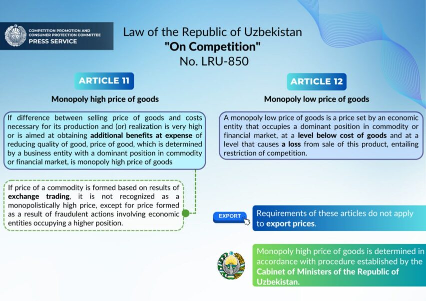 NEW LAW OF THE REPUBLIC OF UZBEKISTAN “ON COMPETITION” No. LRU-850 NewsBy Raqobat qo'mitasi18.07.2023What does monopoly high and monopoly low price mean?