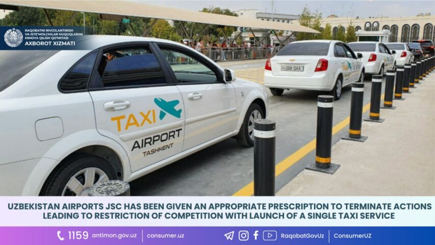 “UZBEKISTAN AIRPORTS” JSC HAS BEEN GIVEN AN APPROPRIATE PRESCRIPTION TO TERMINATE ACTIONS LEADING TO RESTRICTION OF COMPETITION WITH LAUNCH OF A SINGLE TAXI SERVICE