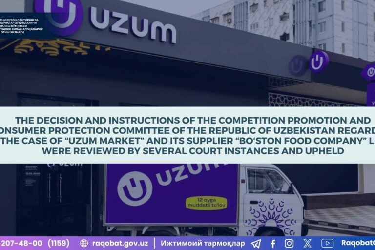 Sep102025 The Decision and Instructions of the Competition Promotion and Consumer Protection Committee of the Republic of Uzbekistan Regarding the Case of “UZUM MARKET” and Its Supplier “BO‘STON FOOD COMPANY” LLC Were Reviewed by Several Court Instances and Upheld 10.09.2025