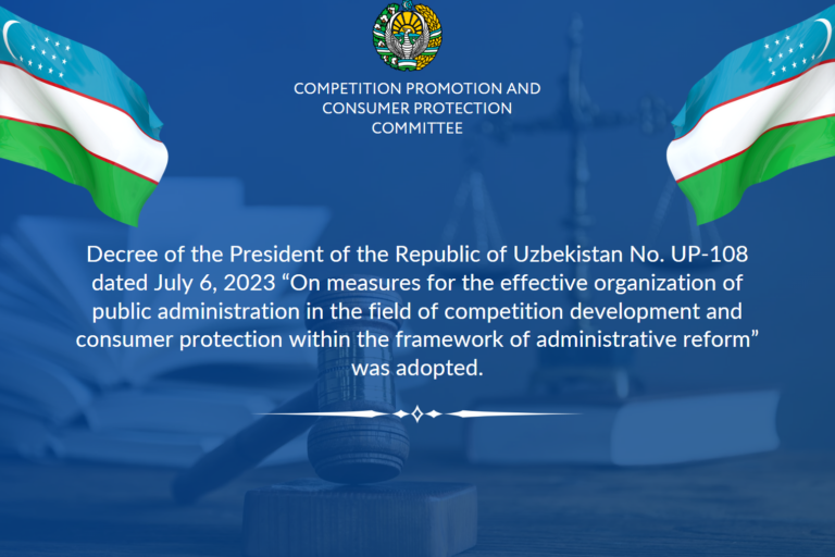 Jul122023 Decree of the President of the Republic of Uzbekistan No. UP-108 dated July 6, 2023 “On measures for the effective organization of public administration in the field of competition development and consumer protection within the framework of administrative reform” was adopted.