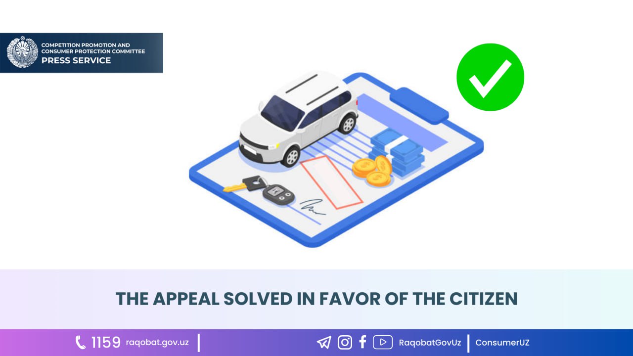 As a result of the work carried out by the employees of the territorial office, a car was issued in the name of the applicant and 65,000,000 UZS were paid to the owner.
