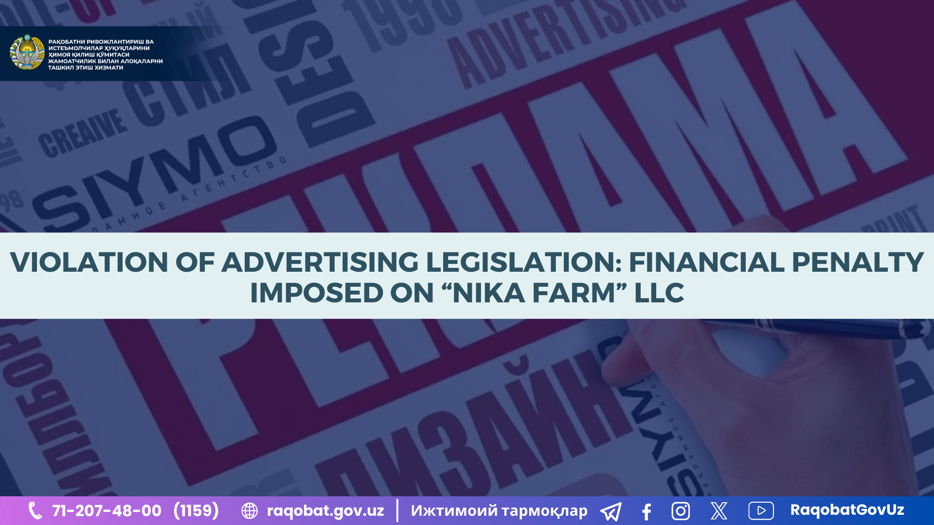 Based on the above circumstances, the Special Commission of the Committee initiated a case against “NIKA FARM” LLC for violation of the relevant provisions of the Law “On Advertising” and, following the review of the case, decided to impose a financial penalty.
