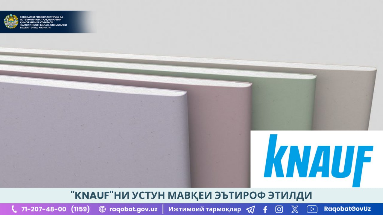 Таҳлил натижаларига кўра, “Knauf Gips Buxoro” МЧЖнинг бозордаги улуши 40 фоиздан ортиқни ташкил этганлиги муносабати билан «Рақобат тўғрисида»ги Қонуннинг 13-моддасига асосан устун мавқега эга деб эътироф этилди.