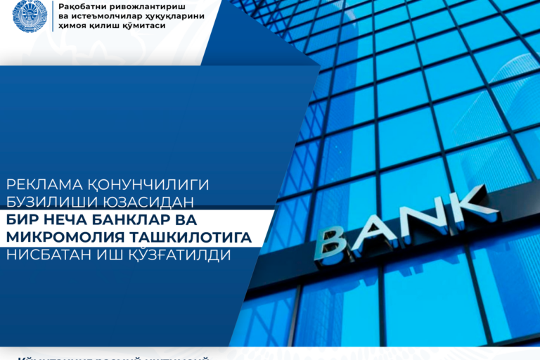 Март72025 РЕКЛАМА ҚОНУНЧИЛИГИ БУЗИЛИШИ ЮЗАСИДАН БИР НЕЧА БАНКЛАР ВА МИКРОМОЛИЯ ТАШКИЛОТИГА НИСБАТАН ИШ ҚЎЗҒАТИЛДИ