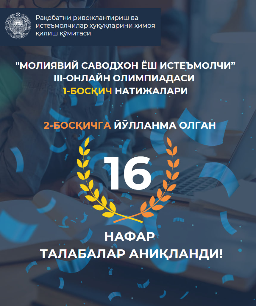 2025 йилда ўтказилган “Молиявий саводхон ёш истеъмолчи” билимлар танловининг 1 босқич ғолиблари (2 босқичга йўлланма олган иштирокчилар) рўйхати