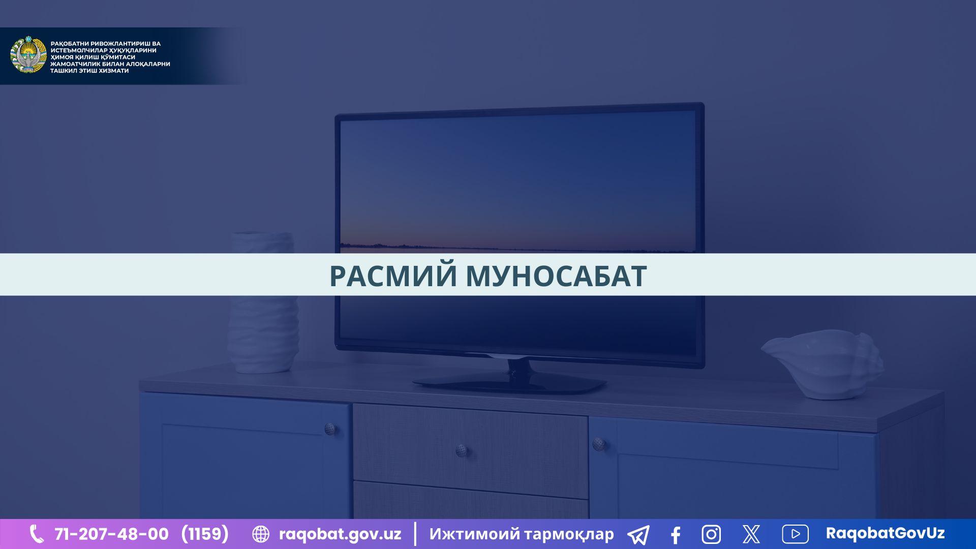 Қорақалпоғистон Республикаси Рақобатни ривожлантириш ва истеъмолчилар ҳуқуқларини ҳимоя қилиш қўмитаси мазкур мурожаат юзасидан қуйидагиларни маълум қилади.