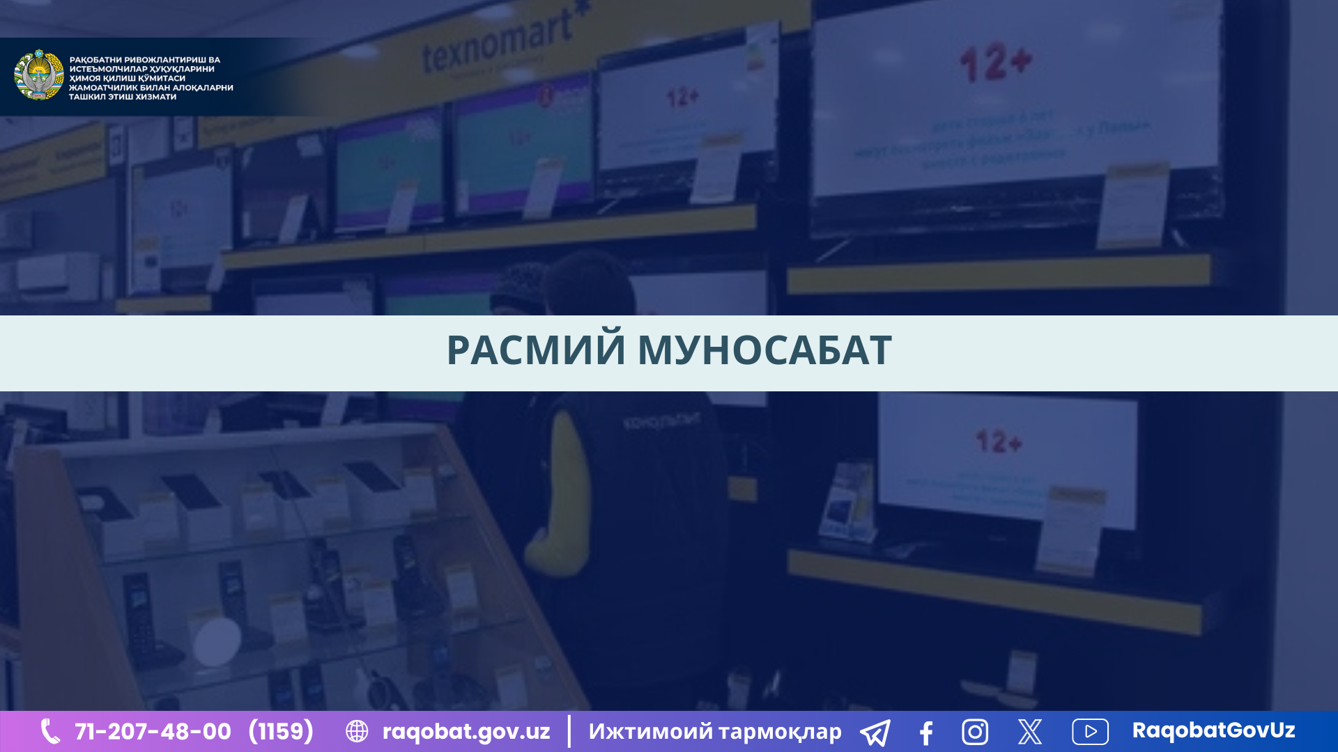 Рақобатни ривожлантириш ва истеъмолчилар ҳуқуқларини ҳимоя қилиш қўмитаси мазкур ҳолат юзасидан қуйидагиларни маълум қилади.