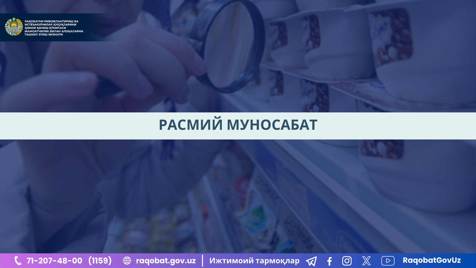 Рақобатни ривожлантириш ва истеъмолчилар ҳуқуқларини ҳимоя қилиш қўмитаси мазкур мурожаат юзасидан қуйидагиларни маълум қилади.
