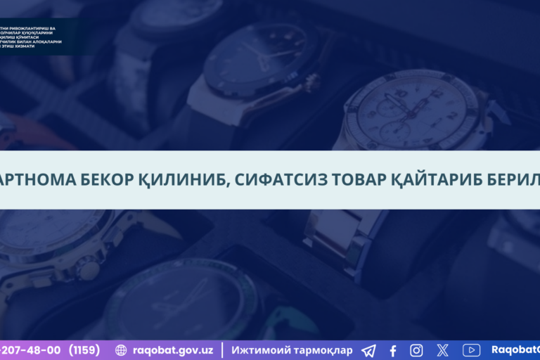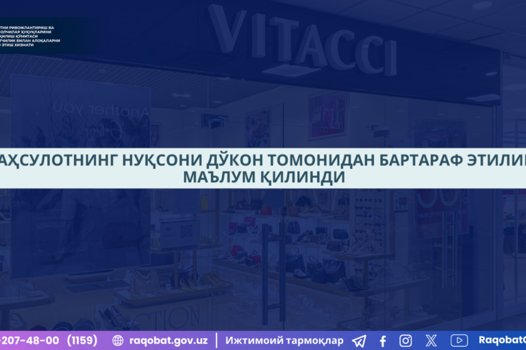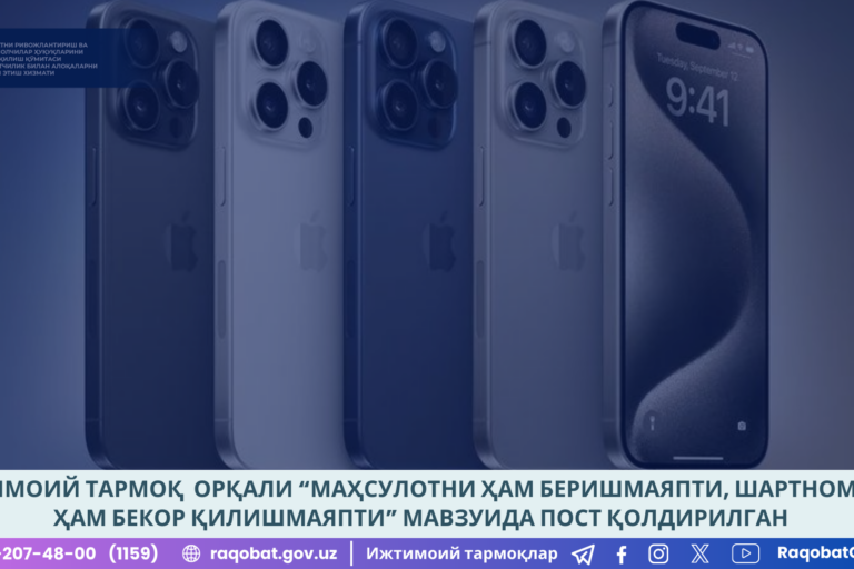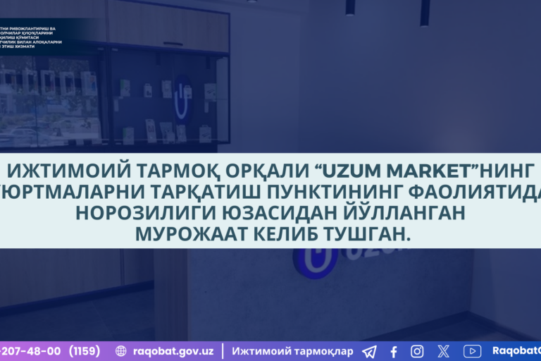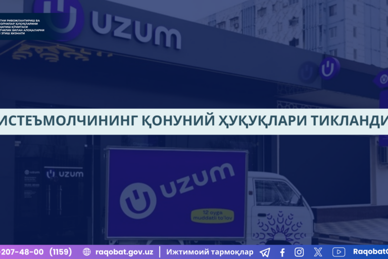 Янв222025 Ижтимоий тармоқ орқали фуқаро томонидан “Uzum Market” иловаси орқали муддатли тўлов шарти билан телевизор харид қилганлиги, бироқ телевизорнинг экран қисмида нуқсон мавжудлиги юзасидан йўлланган мурожаат келиб тушган. 22.01.2025