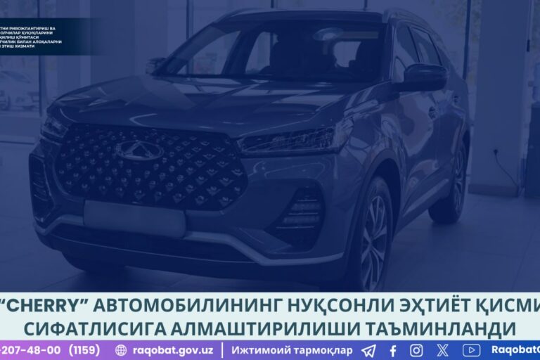 Июль42024 “Cherry” автомобилининг нуқсонли эҳтиёт қисми сифатлисига алмаштирилиши таъминланди 04.07.2024