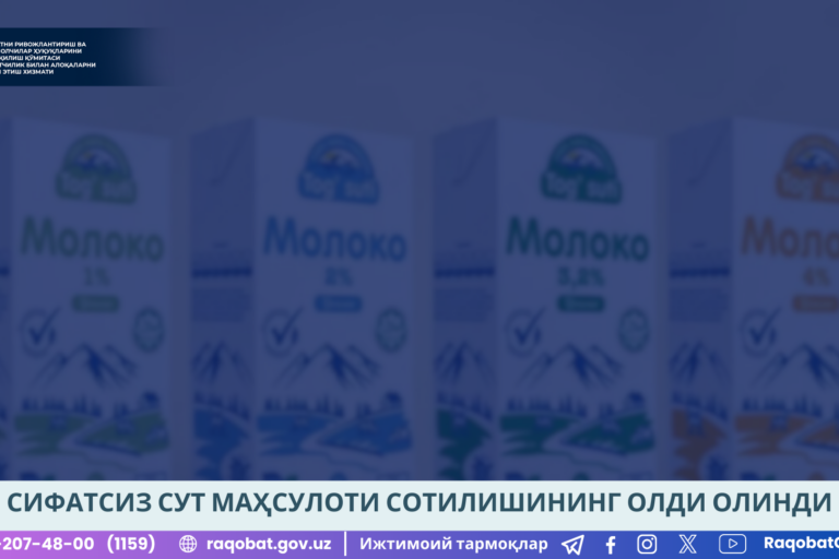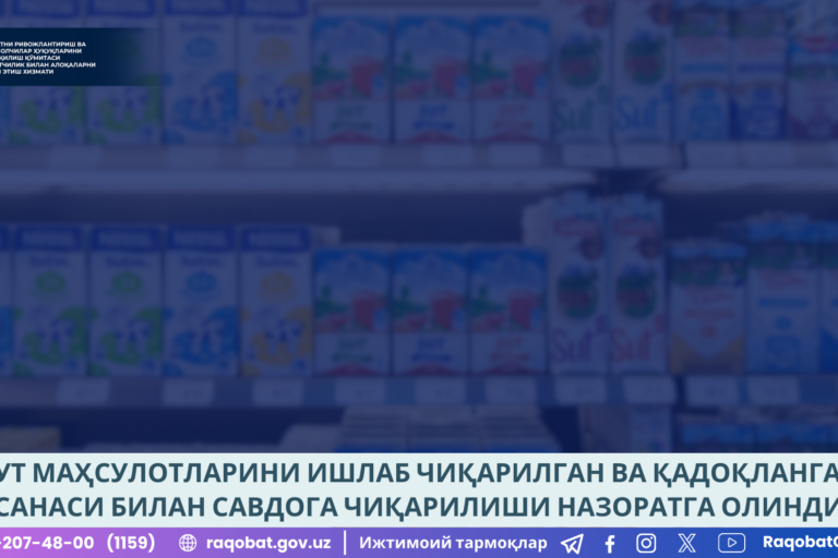 Июль42024 Сут маҳсулотларини ишлаб чиқарилган ва қадоқланган санаси билан савдога чиқарилиши назоратга олинди 04.07.2024