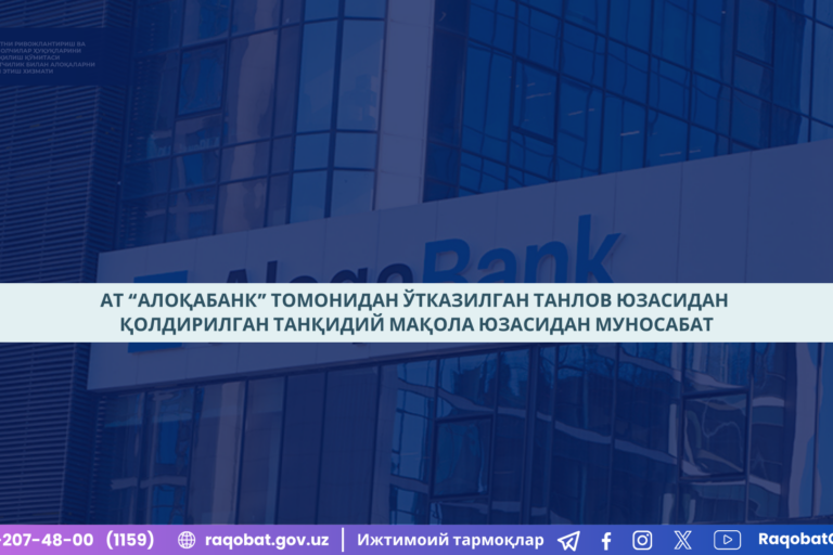 Авг142024 АТ “Алоқабанк” томонидан ўтказилган танлов юзасидан қолдирилган танқидий мақола юзасидан МУНОСАБАТ 14.08.2024