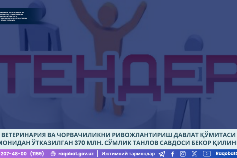 Сен102024 Ветеринария ва чорвачиликни ривожлантириш давлат қўмитаси томонидан ўтказилган 370 млн. сўмлик танлов савдоси бекор қилинган 10.09.2024