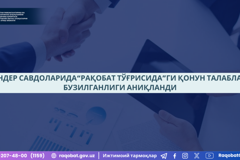Фев182025 РАҚОБАТ ҚЎМИТАСИ ТОМОНИДАН “РЕКЛАМА ТЎҒРИСИДА”ги ҚОНУНГА ЗИД ҲОЛАТЛАР БАРТАРАФ ЭТИЛМОҚДА 18.02.2025