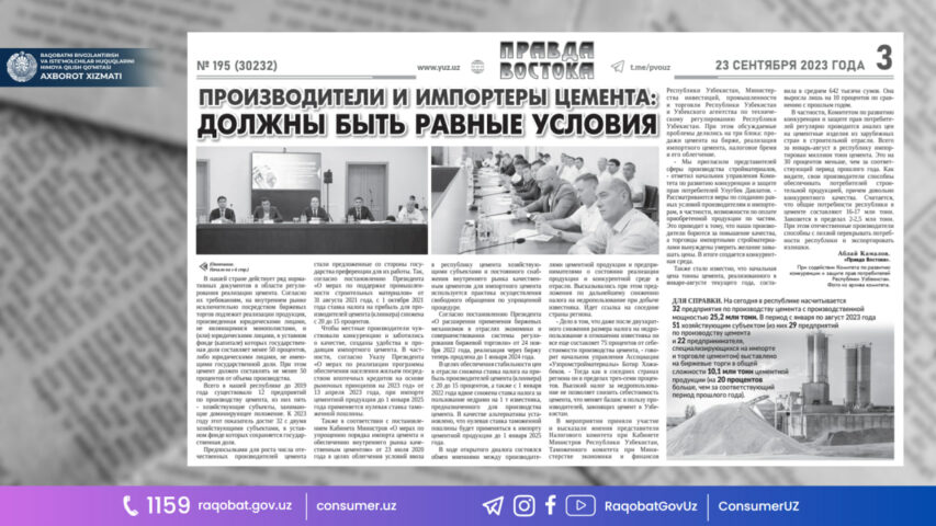 ОБЪЯВЛЕНИЕ! 📌 28 сентября 2023 года в 16:00 состоится брифинг в здании АОКА. 🔹Тема: «Действия Комитета по конкуренции по обеспечению контроля за недобросовестной конкуренцией и государственными закупками». 🎙 Информацию на брифинге предоставит Отабек Усмонов советник председателя Комитета по развитию конкуренции и защите прав потребителей. 📝 Брифинг будет транслироваться онлайн на телеканалах «UzReport TV», «O‘zbekiston 24»…
