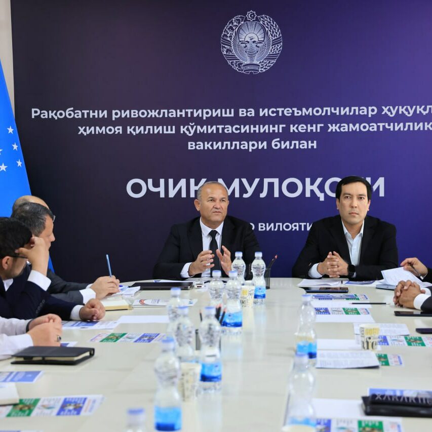 Joriy yilning 3-avgust kuni Raqobatni rivojlantirish va iste’molchilar huquqlarini himoya qilish qo‘mitasida Yangi tahrirda qabul qilingan O‘zbekiston Respublikasining “Raqobat to‘g‘risida”gi O‘RQ-850-sonli Qonuni mazmun- mohiyati va ijrosiga bag‘ishlangan davra suhbati tashkil etildi.