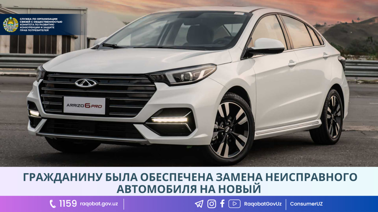 В данном обращении сообщается, что в ноябре 2023 года автомобиль «CHERY ARRIZO 6 PRO», приобретенный гражданином в автосалоне с гарантийным сроком на сумму 289 900 000 сумов, оказался в неисправном состоянии, в связи с чем он потребовал от автосалона возврат уплаченных денежных средств или замену автомобиля на новый. Однако, не достигнув результата, гражданин обратился в территориальное управление Комитета за практической помощью в разрешении данного вопроса.