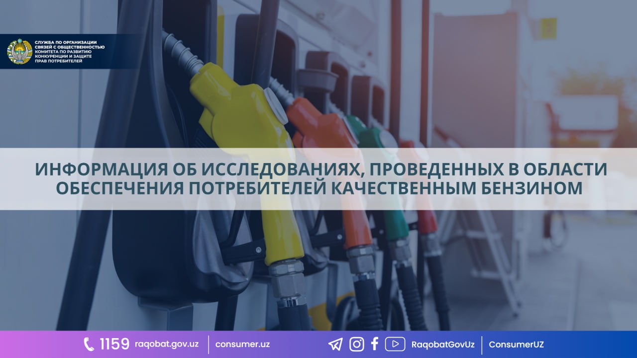 Комитет по развитию конкуренции и защите прав потребителей Республики Узбекистан в сотрудничестве с «Узэнергоинспекция» в ноябре-декабре 2023 года провел контрольные закупки бензина на АЗС, расположенных во всех регионах республики в целях изучения ситуации обеспечения населения качественным бензином. В ходе исследований, образцы бензина приобретенные на 82 АЗС, были сданы в установленном порядке в соответствующие лаборатории.