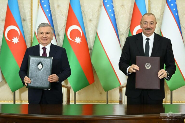 Авг232023 Президенты Узбекистана и Азербайджана выразили удовлетворение плодотворными итогами переговоров 23.08.2023