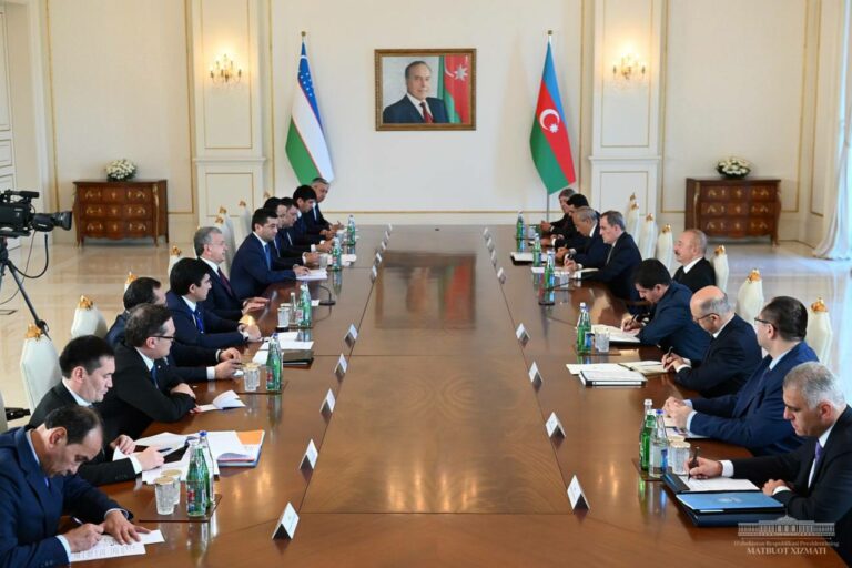 Авг222023 Состоялись переговоры делегаций Узбекистана и Азербайджана в расширенном формате 22.08.2023