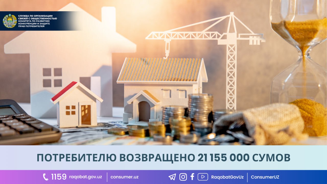 Заявление было изучено Ташкентским городским территориальным управлением Комитета при участии ООО «Future Growth». Была изучена рыночная стоимость предлагаемой компанией строительной техники и установлено, что в результате перерасчета расход на новую квартиру потребителя составил 21 155 000 сумов.