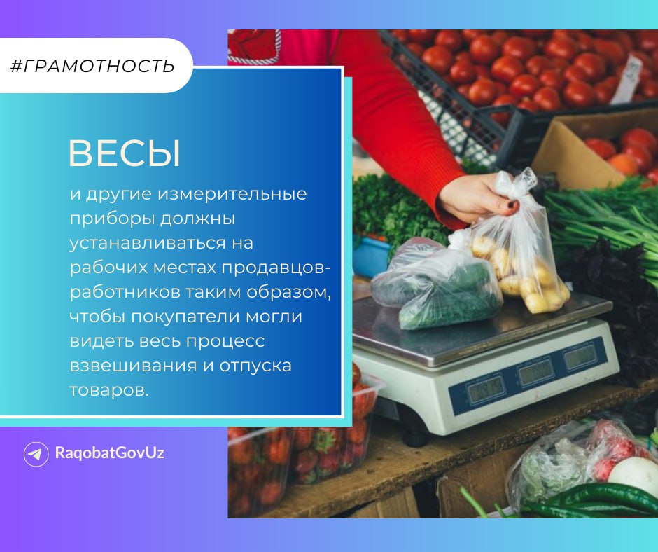 Весы и другие измерительные приборы должны устанавливаться на рабочих местах продавцов-работников таким образом, чтобы покупатели могли видеть весь процесс взвешивания и отпуска товаров.
