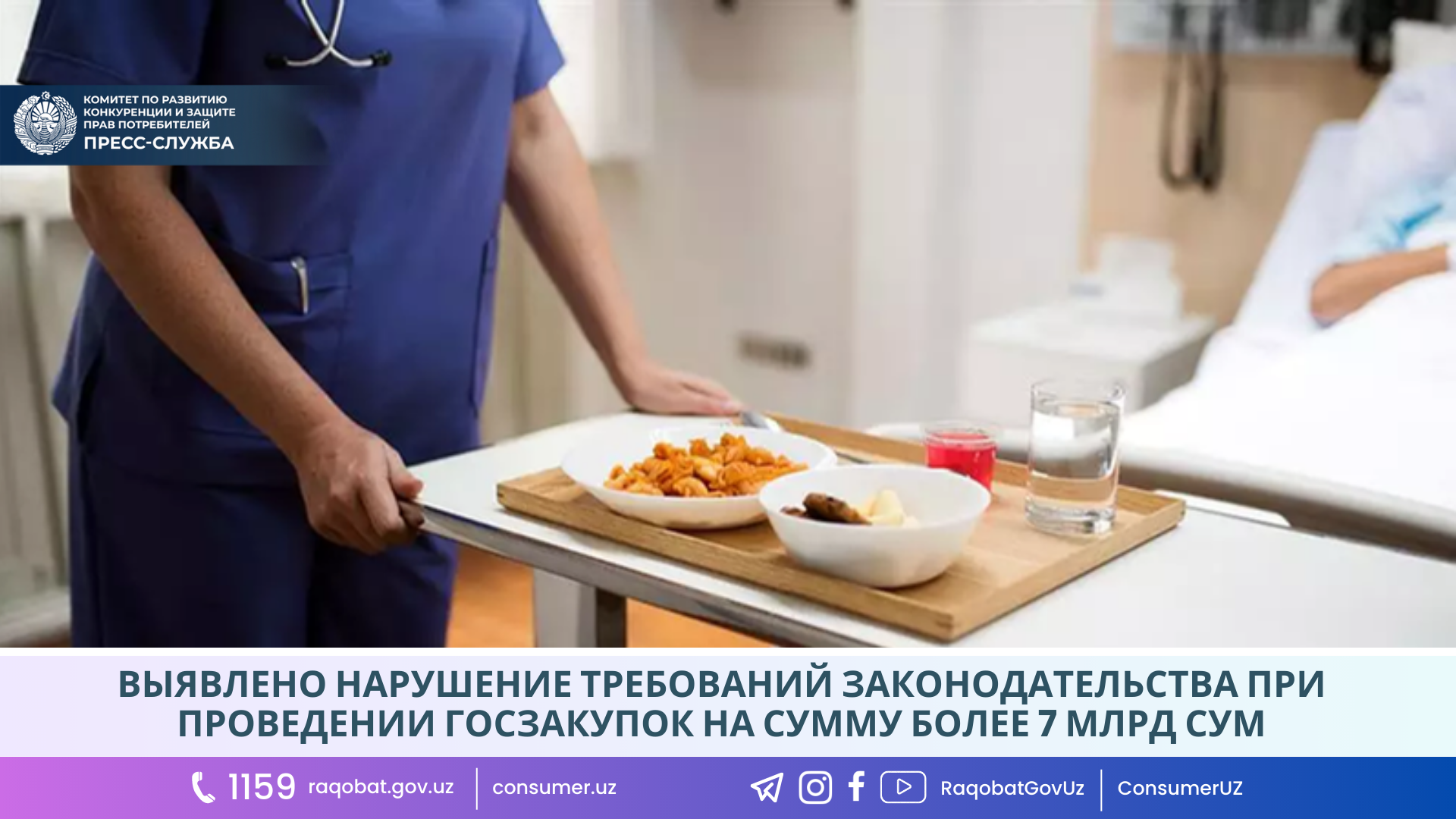 Территориальным управлением по Джизакской области Комитета по развитию конкуренции и защите прав потребителей проведено исследование касательно нарушений Закона Республики Узбекистан «О государственных закупках» при использовании районными медицинскими объединениями в системе областного управления здравоохранения услуг аутсорсинга (обеспечение горячим питанием).