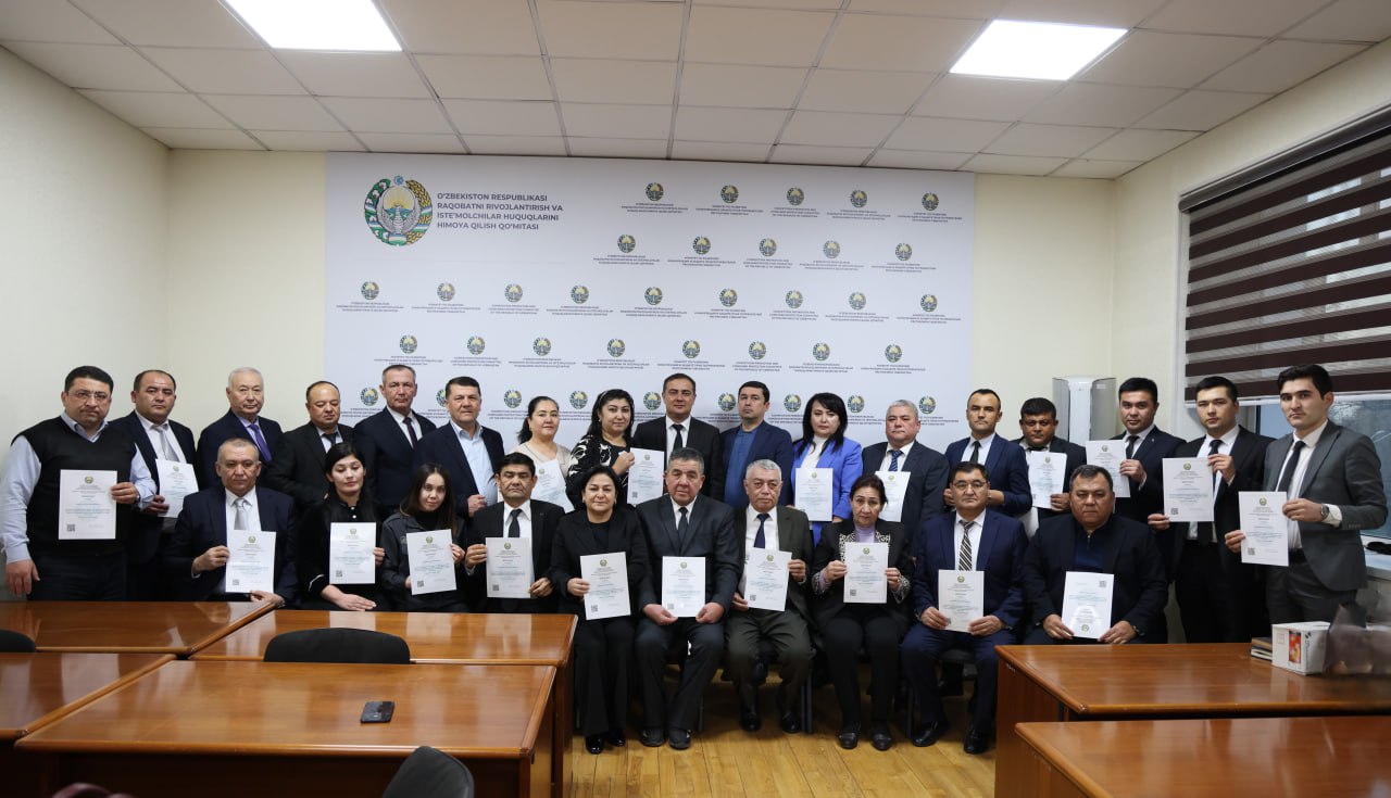 Рақобат қўмитаси ҳузуридаги Рақобат сиёсати ва истеъмолчилар ҳуқуқлари тадқиқотлари маркази томонидан Ўзбекистон Республикаси Президентининг 2025 йил 6 октябрдаги ПҚ-296-сон “Истеъмолчилар ҳуқуқларини самарали ҳимоя қилишни ташкил этиш чора-тадбирлари тўғрисида” ги қарори ижросини таъминлаш мақсадида истеъмолчилар мурожаатлари билан ишлаш, “Сирли мижоз” ва назорат хариди тадбирларини ўтказиш ҳамда “Истеъмолчи мурожаати” электрон тизимида ишлаш бўйича нодавлат нотижорат ташкилотлари ходимларини ўқитишга қаратилган махсус ўқув курслари ташкил этилди.