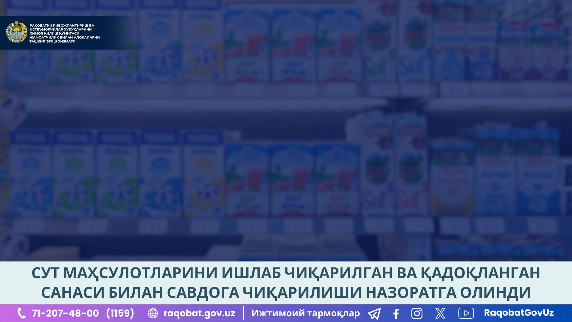 Шунингдек, “Milkolino Products” МЧЖ мазкур ҳолат учун харидорлардан узр сўраган ҳолда сут маҳсулотларини савдога чиқаришни қатъий назоратга олганини билдириб ўтди.