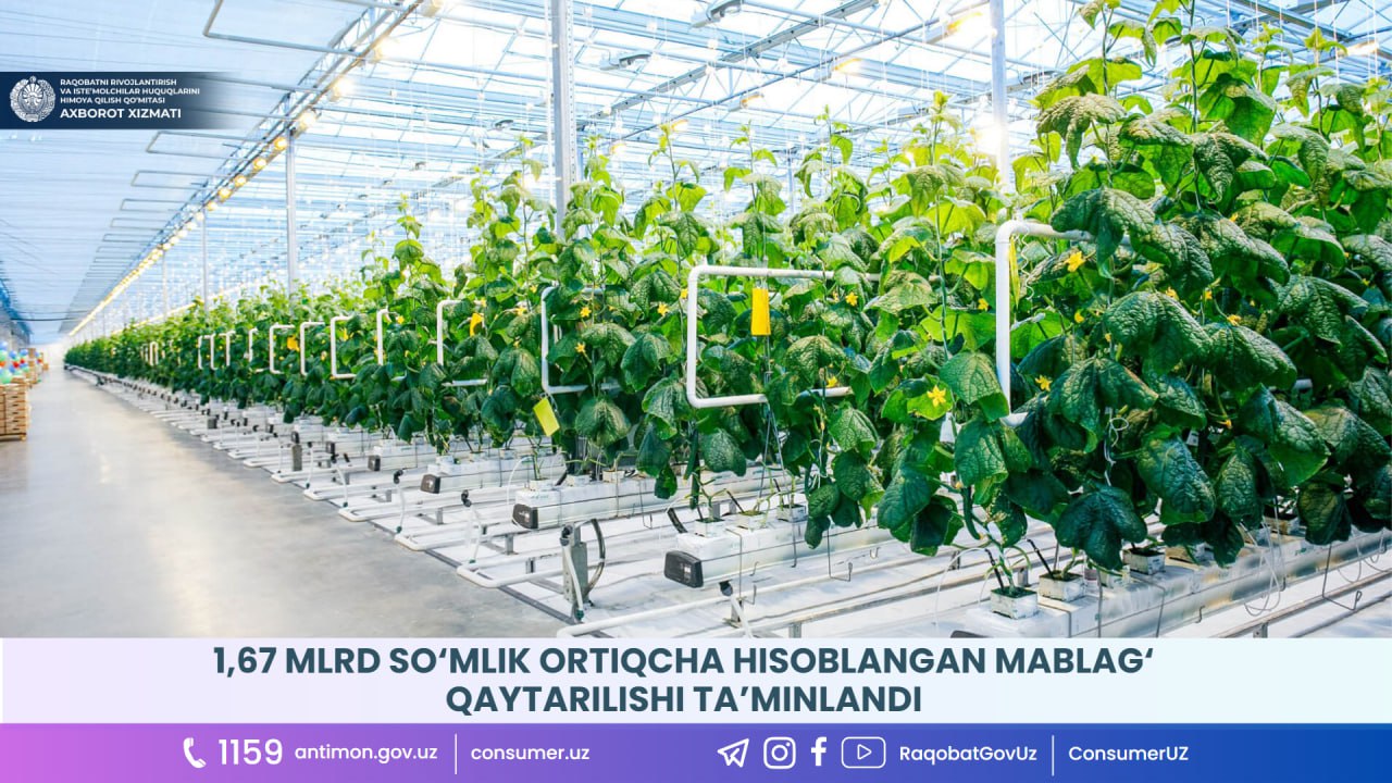 Hududiy boshqarmaning maxsus komissiyasi tomonidan mazkur qonunbuzilish holati ko‘rib chiqilib, tadbirkorlarga 1,67 mlrd so‘mlik ortiqcha hisoblangan mablag‘ qaytarilishi ta’minlandi.