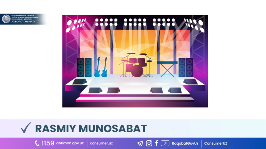 O‘zbekiston Respublikasi Raqobatni rivojlantirish va iste’molchilar huquqlarini himoya qilish qo‘mitasi tomonidan https://t.me/Samarqand_live telegram kanalida xonanda Sevinch Mo‘minovaning konsert dasturi yuzasidan bildirilgan e’tirozlar yuzasidan quyidagilarni ma’lum qiladi. Mazkur axborotda, joriy yilning 25 may kuni Samarqand viloyatining Urgut tumanida joylashgan markaziy istirohat bog‘ida xonanda Sevinch Mo‘minovaning konsert dasturi rejalashtirilganligi, biroq mazkur konsert dasturida xonandaning ishtirok etmaganligi ma’lum…
