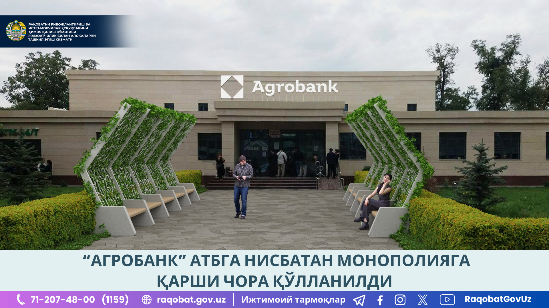 Mazkur ishni ko‘rib chiqish yakunlari bo‘yicha “AGROBANK” ATB Toshkent viloyat boshqarmasiga moliyaviy jarima qo‘llanilgan.