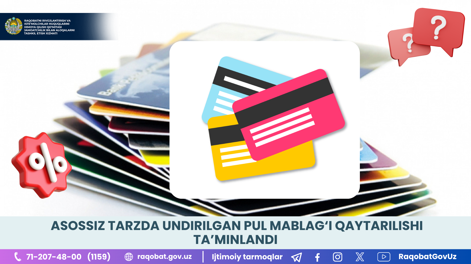 Toshkent shahar hududiy boshqarmasi tomonidan olib borilgan o‘rganishlar davomida, “HUMANS” MCHJ tomonidan taqdim etilgan plastik kartasi hisobidan noma’lum sabablarga ko‘ra, asossiz tarzda 7 986 475 so‘m miqdordagi pul mablag‘i undirilganligi aniqlangan.