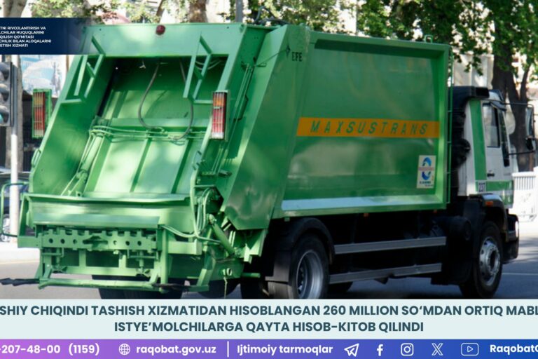 Iyun262024 MAISHIY CHIQINDI TASHISH XIZMATIDAN HISOBLANGAN 260 MILLION SO‘MDAN ORTIQ MABLAG‘ ISTYE’MOLCHILARGA QAYTA HISOB-KITOB QILINDI