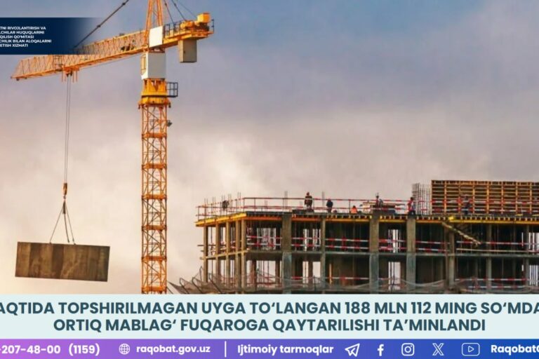 Apr42024 VAQTIDA TOPSHIRILMAGAN UYGA TO‘LANGAN 188 MLN 112 MING SO‘MDAN ORTIQ MABLAG‘ FUQAROGA QAYTARILISHI TA’MINLANDI