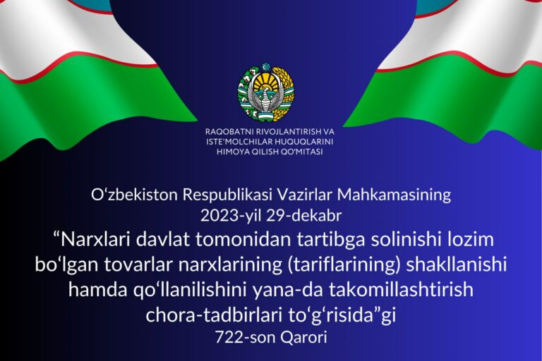 Yan292024 “Narxlari davlat tomonidan tartibga solinishi lozim bo‘lgan tovarlar narxlarining (tariflarining) shakllanishi hamda qo‘llanilishini yana-da takomillashtirish chora-tadbirlari to‘g‘risida”