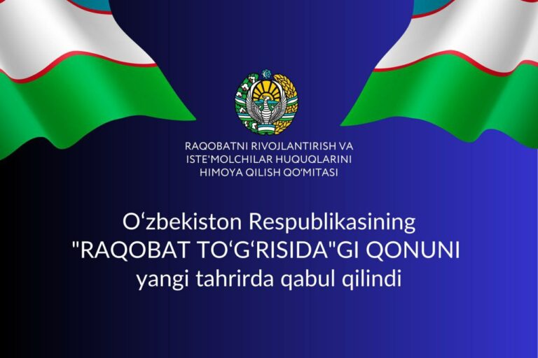 Iyul32023 O‘ZBEKISTON RESPUBLIKASINING YANGI TAHRIRDAGI 850-SONLI «RAQOBAT TO’G’RISIDA»GI QONUNI 2023-YIL 3-IYUL KUNI O‘ZBEKISTON RESPUBLIKASI PREZIDENTI TOMONIDAN IMZOLANDI.