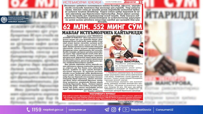 Avtomobillar ishlab chiqarish korxonasidan iste’molchiga yetib kelguniga qadar bir qancha jarayonlardan o‘tadi. Shu davrda avvalo ishlab chiqarishda, so‘ng tashish va sotuvda uning sifatiga putur yetmasligi kerak bo‘ladi. Samarqand viloyati Toyloq tumanida istiqomat qiluvchi fuqaro G‘.H. yetkazib berilgan avtomashinani ko‘rib, uning yangiligiga shubha qildi. Avtosalonning o‘zidayoq bu avtomobilni xarid qilishdan voz kechdi. Shundan so‘ng Raqobatni rivojlantirish …
