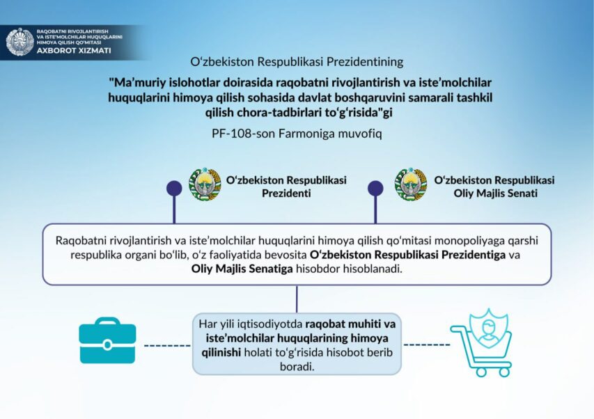 O‘ZBEKISTON RESPUBLIKASINING YANGI «RAQOBAT TO’G’RISIDA»GI O‘RQ-850-SON QONUNI