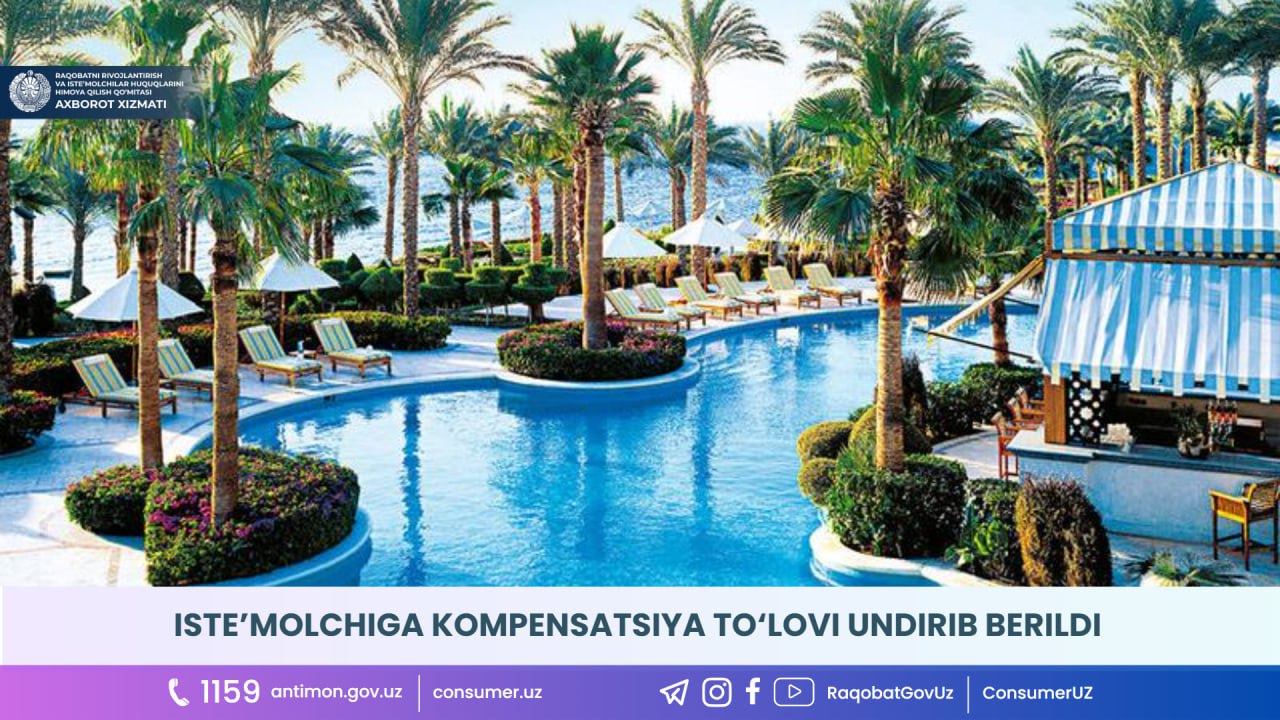 Biroq, turistik firma xodimining xatolari tufayli 1 kunlik dam olish fuqaroga berilmaganligi aniqlandi. Turistik firma rahbariyati yo‘l qo‘yilgan noqulayliklar uchun uzr so‘rab, fuqaroga kompensatsiya to‘lovini ixtiyoriy ravishda to‘lab berdi.