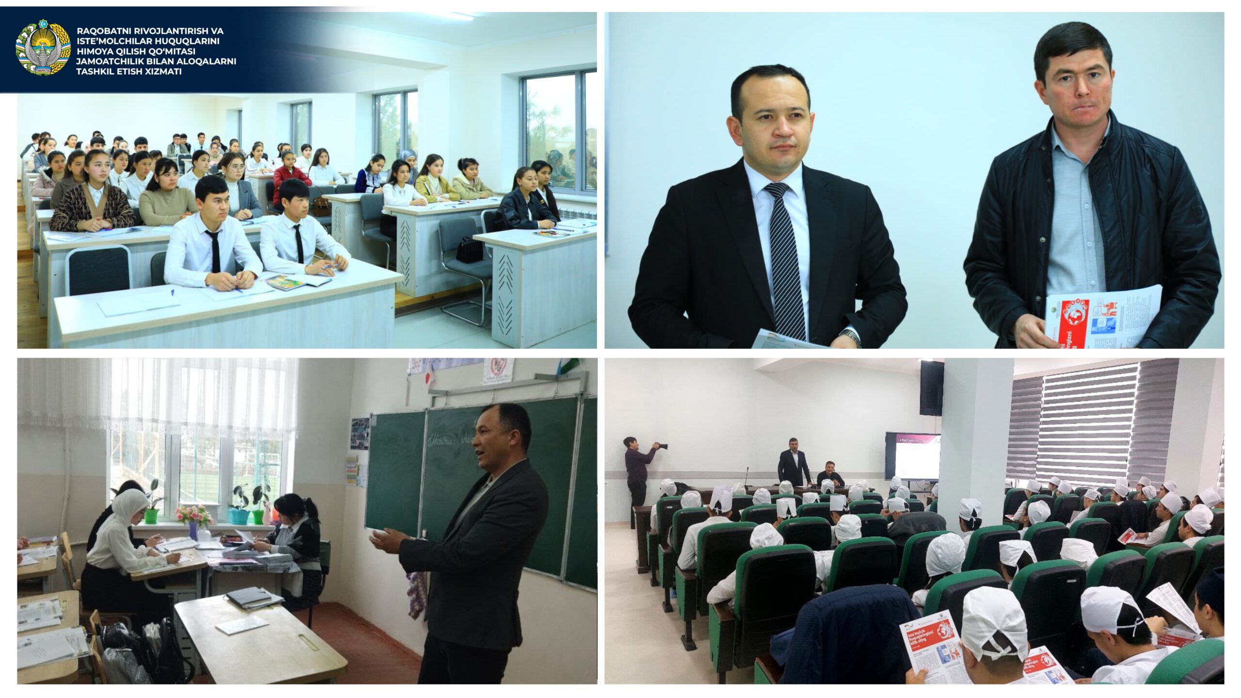 Navoiy shahridagi 5 va 8-maktab o‘quvchilari o‘rtasida bo‘lib o‘tgan tadbirlarda tijorat banklari va mikrokredit tashkilotlaridan kredit olish tartibi, savdo, dori, sug‘urta, aloqa, xususiy ta’lim, tibbiyot masalalari hamda iste’molchi sifatida qanday huquq va erkinliklarga ega ekanliklari bo‘yicha ma’lumotlar berildi.