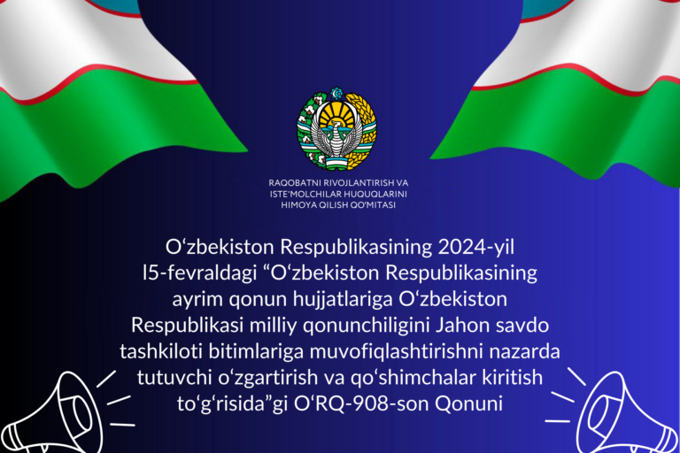 Avg202024 Raqobatni rivojlantirish va iste’molchilar huquqlarini himoya qilish qo‘mitasi tomonidan e’lon qilingan… 20.08.2024