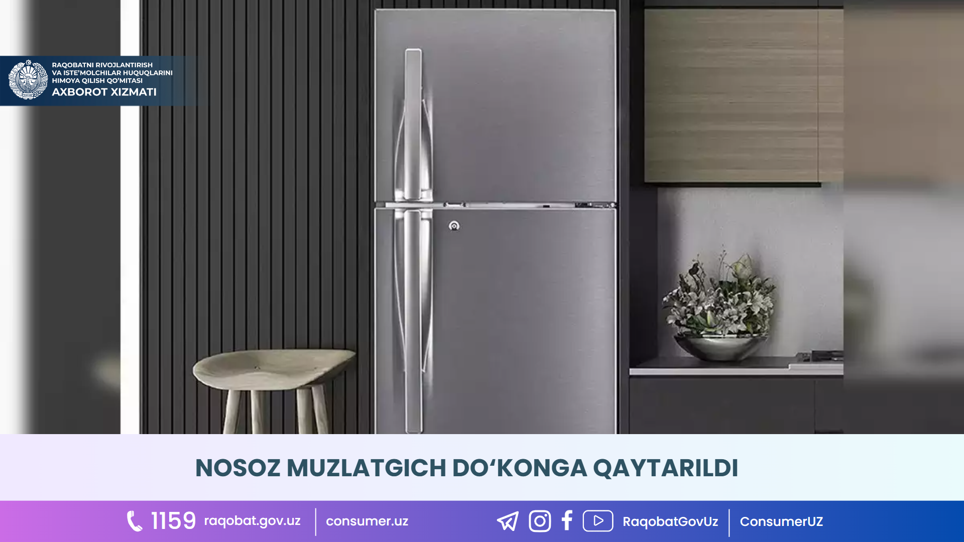Shundan so‘ng iste’molchining nuqsonli muzlatgichi aynan shunday markali sifatli muzlatgichga almashtirib berildi.