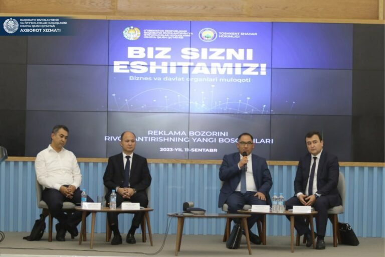 Raqobatni rivojlantirish va isteʼmolchilar huquqlarini himoya qilish qoʼmitasi raisi Sh.Sharaxmetov “Reklama bozorini rivojlantirishning yangi bosqichlari” mavzusidagi davra suhbatini kirish so’zi bilan ochib berdi. 11.09.2023