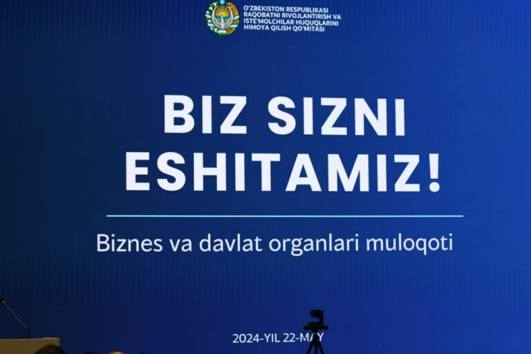 Raqobat qo‘mitasi rahbariyati «Biz sizni eshitamiz» loyihasi doirasida turli yo‘nalishdagi tadbirkorlik subyektlari vakillari bilan ochiq muloqot o‘tkazdi 22.05.2024